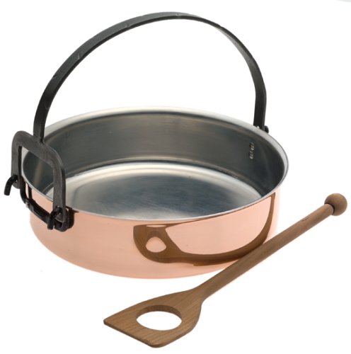 At 10-1/4 inches in diameter and 2-7/8 inches high, the pot holds 3 quarts, enough for large gatherings. A 13-inch, unfinished wooden spoon--perfectly shaped to reach every grain of rice and holed in the center to ease stirring--accompanies the pot. You can also use this pot to cook casseroles on the stovetop or in the oven and to prepare rice dishes other than risotto. Though the copper comes highly polished, maintaining that gleam is not essential; cooks traditionally enjoy the patina age brings to copper as a sign that copperware is practical, not pretentious. --Fred Brack