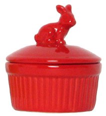 Stoneware Pottery Red Pate Dish with Rabbit Top Cover 4"D, 3.5"H Set of 2 Reviews
